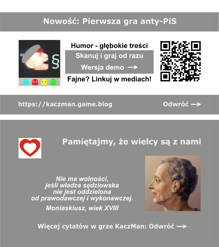 - Dla osób, które chciałyby aby ich materiały anty-PiS zostały zamieszczone na stronie KaczMana, prosimy o maila pod kaczmangame@gmail.com